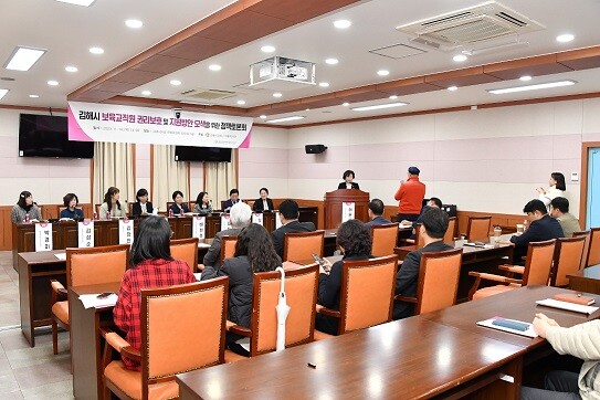 이어 김해시해밀여성정책위원회 김정미 부회장이 좌장을 맡은 토론에서는 해동어린이집 원장, 이화어린이집 원장, 리온공동체 대표, 보육교사 대표, 학부모 대표, 김해시복지국장이 지정토론을 이어나갔다.
