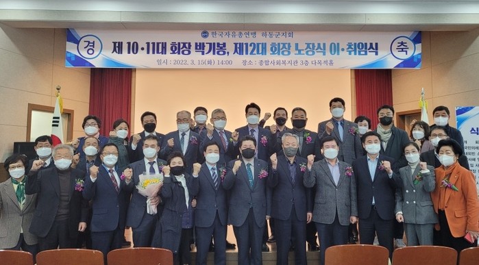 한국자유총연맹 하동군지회는 지난주 종합사회복지관 다목적 홀에서 제11·12대 회장 이·취임식을 했다고 22일 밝혔다.