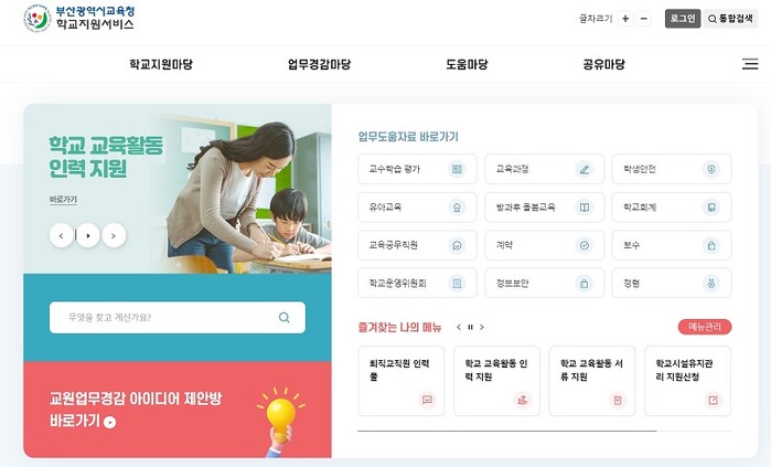 | ▲ 부산학교지원서비스 메인화면 모습. |