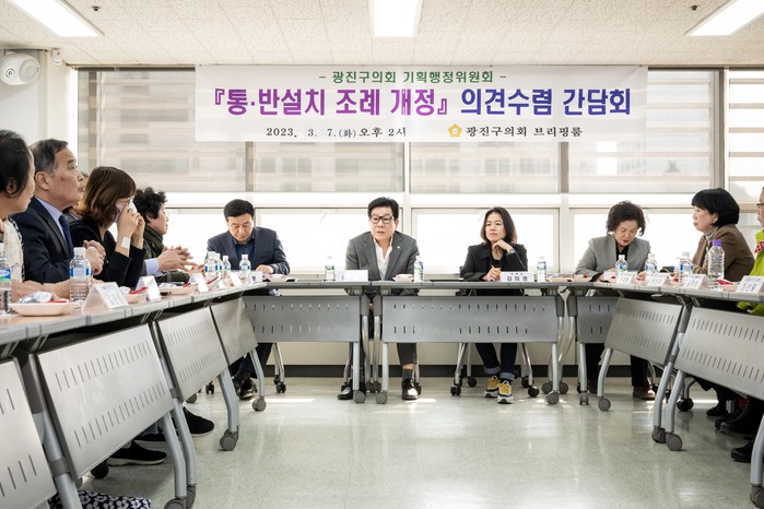 [시민일보 = 여영준 기자] 서울 광진구의회(의장 추윤구)가 지난 7일 구의회 브리핑실에서 각 동 직능단체장과 '서울특별시 광진구 통·반설치 조례 일부개정조례안'의 의견수렴을 위한 간담회를 개최했다.