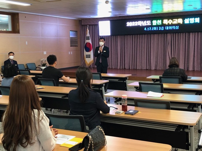 합천교육지원청(교육장 정종화)은 4월 12일(화), 지역의 유·초·중·고등학교 특수학급 담임교사 및 통합학급 교사 30여 명을 대상으로 ‘2022학년도 합천 특수교육 운영 설명회’를 개최하였다.