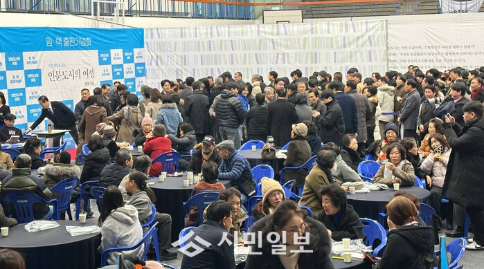 | ▲ 지난 24일 전남여고 체육관(예지관)에서 열린 임택 광주광역시 동구청장의 ‘인문도시의 여정’ 출판기념회장에 각계 인사와 지역 주민 5천여 명의 주민 등이 찾아와 성황을 이루고 있다. / 도서출판 이엔엠 제공 |