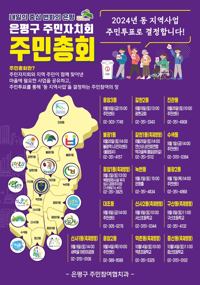 [시민일보 = 이대우 기자] 서울 은평구(구청장 김미경)는 오는 18일부터 10월 14일까지 16개 각 동에서 주민자치회 주관으로 2023년 동 주민총회가 개최된다고 밝혔다.