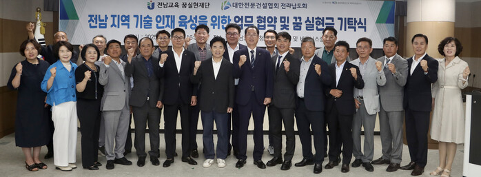 특히 이날 행사에서는 전남 지역 기술 인재 육성을 위한 ‘꿈 실현금’으로, 전문건설협회 전라남도회 본부 1,000만 원, 소속 22개 회원사 2,200만 원 등 총 3,200만이 재단에 전달됐다.