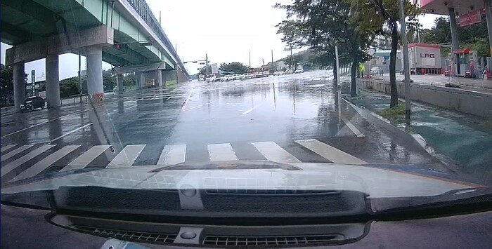 | ▲ 배수구 뚫기 전(도로에 물이 가득찬 모습)(출처=목포경찰) |