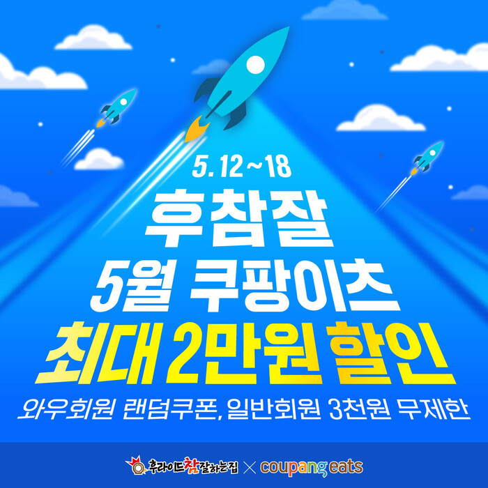 이번 프로모션은 5월 12일부터 18일까지 7일간 진행되며, 쿠팡이츠 이용 고객이라면 누구나 매일 3,000원의 기본 할인 혜택을 받을 수 있다. 특히 쿠팡 멤버십 서비스인 ‘와우’ 회원은 랜덤 할인 쿠폰을 통해 최대 2만 원까지 할인 받을 수 있어 더욱 큰 혜택을 누릴 수 있다.