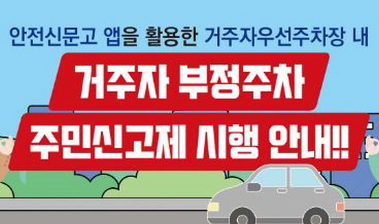 거주자 부정주차 주민신고제의 신고는 안전신문고 앱을 통해 거주자우선주차장 배정 계약자 본인 신고 건에 한하여 인정되며 구간제 이용자는 제외된다.