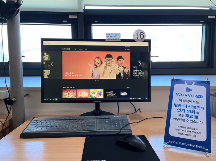 VOD서비스는 도서관 회원이라면 누구나 이용 가능하며 개관시간에 맞춰 도서관 디지털자료실을 방문하여 ‘웨이브온 코너’를 예약하면 간편하게 시청할 수 있으며 최대 2시간까지 이용 가능하다.