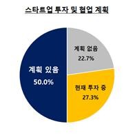 집계결과에 따르면 설문응답 기업인 50%가 스타트업에 대한 투자나 협업 계획이 있으며, 27.3%는 현재 투자를 하고 있는 것으로 나타나 지역 기업인들도 스타트업에 대한 투자 의향이 높은 것으로 확인되었다. 반면 계획이 없다고 응답한 기업인은 22.7%에 불과했다.