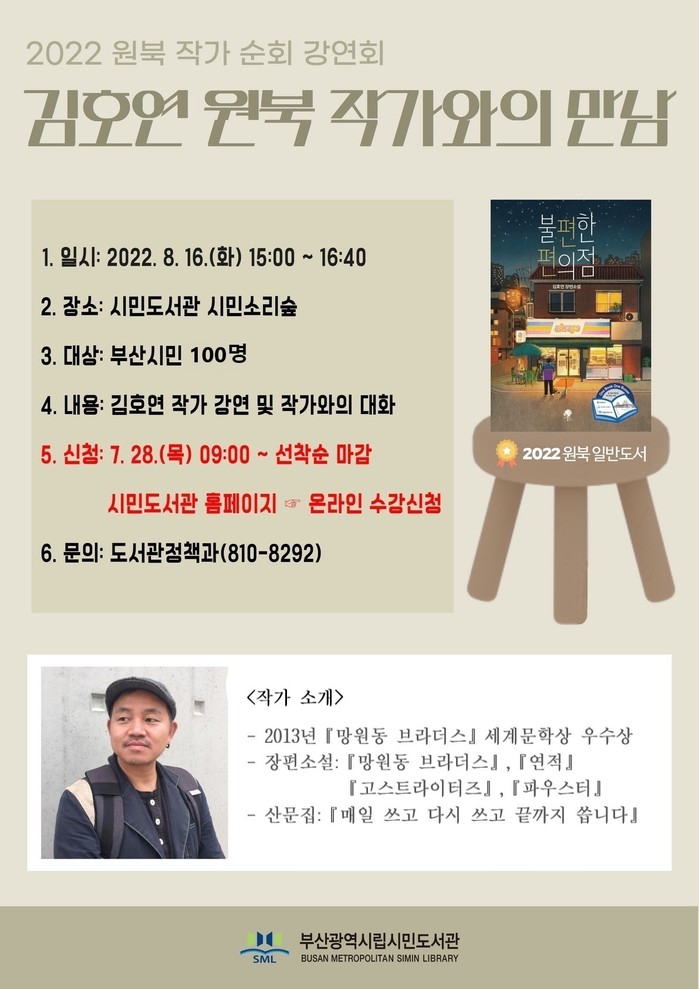 이 행사는 2022년 원북 일반 부문 ‘불편한 편의점’의 저자 김호연 작가를 초청해 원북 을 알리고, 부산 시민들에게 독서 문화 프로그램 참여 기회를 제공하기 위한 것이다.
