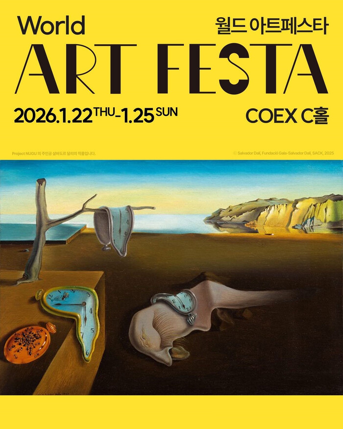 월드 아트페스타 2026은 2026년 1월 22일(목)부터 25일(일)까지 서울 코엑스 C홀에서 개최된다. 프로젝트 이지(Project EASY) 특별전, 프로젝트 플레이(Project PLAY) 설치 작품, 주요 기획 전시, 약 100개 참여 갤러리가 함께하며 새해를 여는 대표 예술 행사로 기대를 모으고 있다.