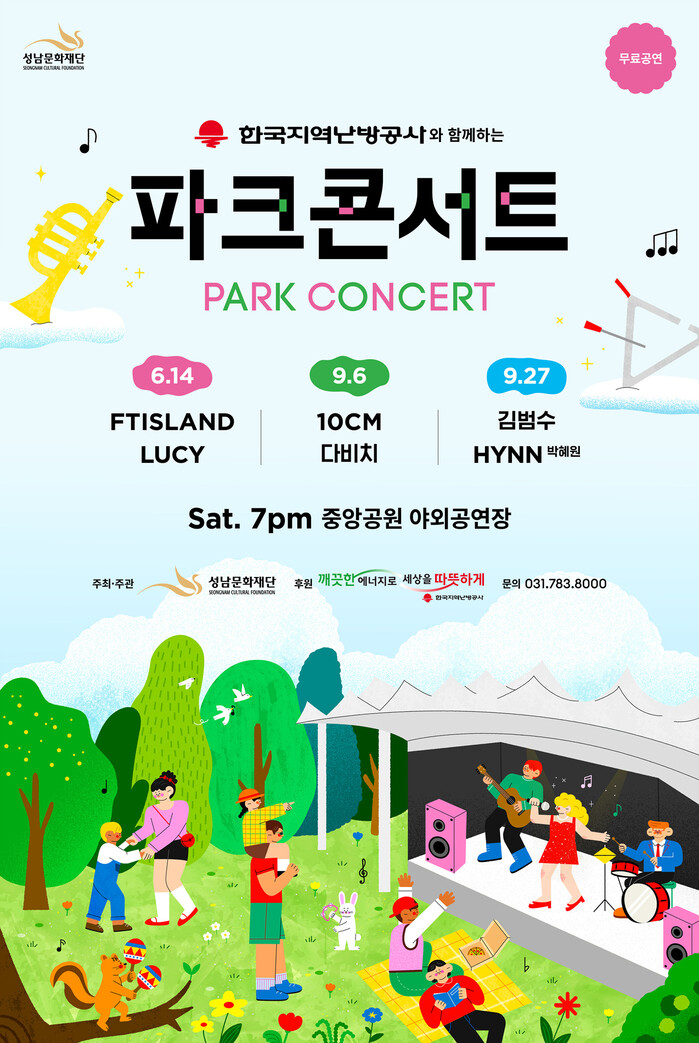 성남문화재단(대표이사 윤정국)이 주최하는 대표적인 도심 속 야외 음악 축제인 ‘파크콘서트’와 올해 새롭게 선보이는 야외 콘서트 ‘뮤직페스타’가 오는 6월부터 시민과 함께하는 음악의 대향연을 펼친다.