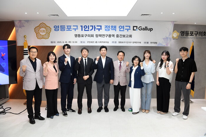 한편, '영등포구 1인 가구 정책연구회'는 지난 3월 25일 영등포구의회 운영위원회 승인을 거쳐 공식 출범했으며, 6월 13일 발대식 및 연구용역 착수보고회를 통해 본격적인 연구 활동을 시작했다.
