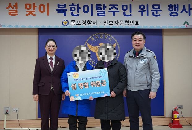 [목포=황승순 기자]목포경찰서(서장 문병조)는 안보자문협의회(회장 권주공)와 함께 설을 맞이해, 지역에 거주하고 있는 탈북민들을 위한 명절 위문금 전달식을 2월 10일(화) 목포경찰서 이준규홀에서 가졌다.