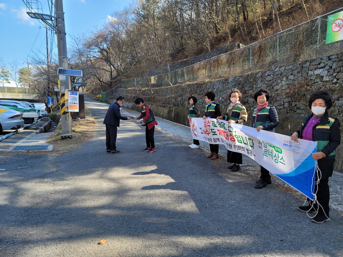 이을순 여성민방위기동대 대장은 “논‧밭두렁을 태우고 입산 시 인화물질을 휴대하는 등 사소한 부주의가 큰 산불이 될 수 있다”며 “우리가 걷는 푸른 숲을 지키기 위해 모두 경각심을 갖고 산불예방에 앞장서 주기를 바란다”고 말했다.