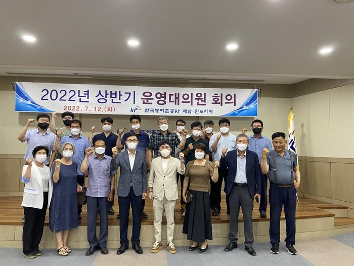 [해남=정찬남 기자] 한국농어촌공사 해남ㆍ완도지사(지사장 김재식)는 12일 제10기로 위촉된 운영대의원(12名)과 함께 지사 대회의실에서 2022년 상반기 운영대의원 회의를 개최했다.