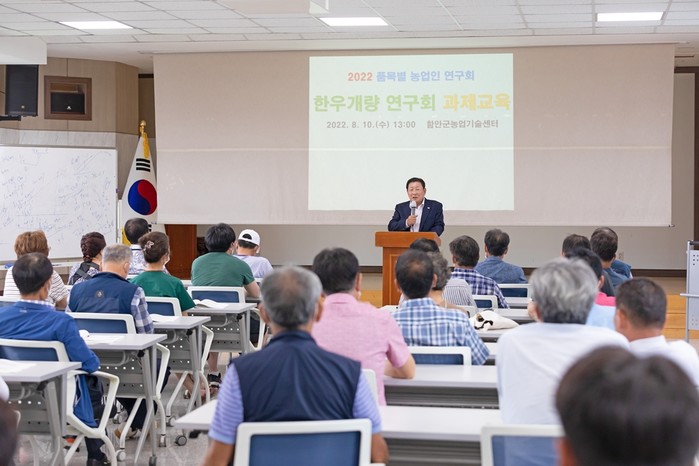 함안 군은 품목 별 농업인 연구회(한우 개량) 과제 교육을 10일 농업 기술 센터 농업인 회관 3층 회의실 에서 한우 개량 연구회 30명을 대상으로 실시했다.
