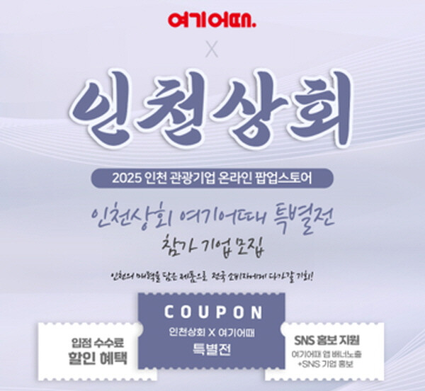 이번 사업은 단순한 전시·홍보 형태를 넘어‘여기어때’ 플랫폼 내 인천 관광기업 특별전을 통해 실제 소비자 대상 상품 판매가 이뤄지는 온라인 팝업스토어 형태로 운영된다.