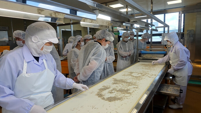 | ▲ 화성특례시 공공급식 모니터링단이 22일 안녕동 소재 수산물 공급업체를 방문해 건어물 이물질 선별과정을 살펴보고 있다 /사진제공=화성특례시 |