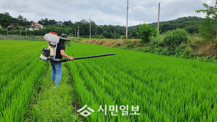 | ▲ 벼 이삭거름을 살포 작업 / 강진군 제공 |