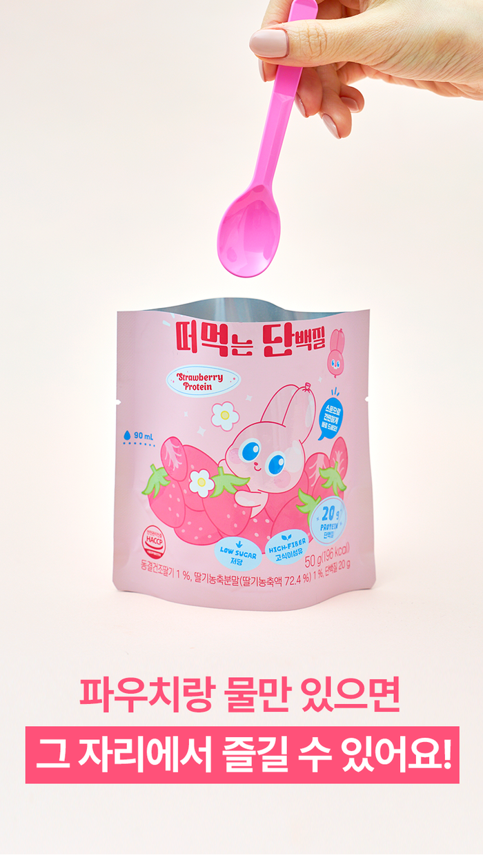이번에 선보인 ‘떠먹단’은 기존 단백질 보충제가 대부분 액상 쉐이크 형태에 집중된 시장에서 보기 드문 ‘떠먹는 요거트 형태’를 채택한 것이 특징이다. 일반 요거트와 달리 냉장이 필요 없으며, 분말 상태로 보관되다가 물을 넣으면 요거트처럼 점성을 갖춘 형태로 변화한다.