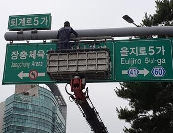 도로표지판 중 매다는 방식(현수식)으로 설치된 130개에 대한 안전 점검, 도로표지판과 지주를 연결하는 안전핀 확인을 전문 업체에 의뢰했으며 파손 및 교체가 필요한 시설물은 신속하게 교체했다.