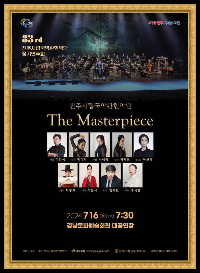 진주시립국악관현악단이 오는 16일 오후 7시 30분, 경남문화예술회관에서 제83회 정기연주회 'The Masterpiece'를 선보인다. 이번 공연은 이건석 지휘자의 지휘 아래, 국악 관현악의 다양한 명작들이 무대에 오를 예정이다.