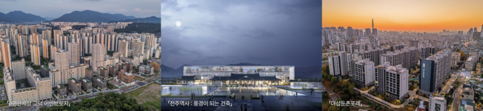 | ▲ (왼쪽부터) e편한세상 고덕 어반브릿지, 전주역사 풍경이 되는 건축, 더샵둔촌포레 |