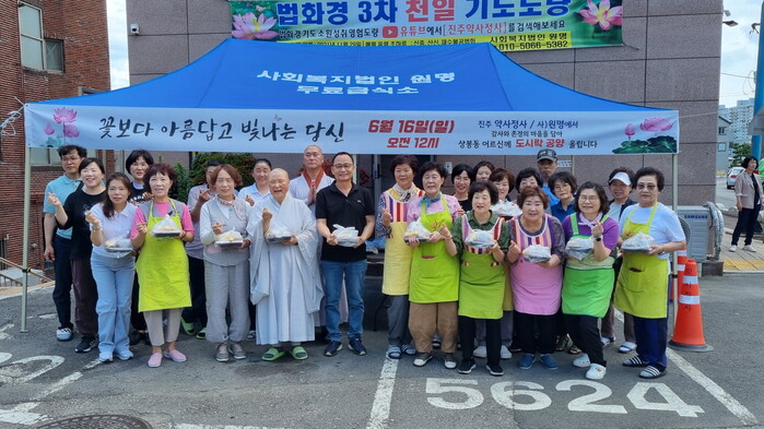 진주시 상봉동 약사정사(주지 진여스님)에서 지난 16일 신도와 봉사자들이 참여한 가운데 관내 어르신 200여 명을 대상으로 무료 도시락을 제공하는 행사를 개최했다.