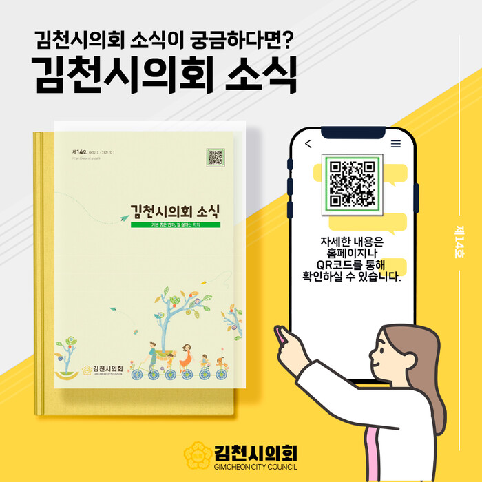 제14호 소식지에는 제9대 전반기 의회 소개와 함께 행정사무감사, 5분 자유발언 및 시정질문, 기획보도, 의정포커스 등 다양한 내용을 수록했다. 소식지는 관내 유관기관 등에 배부하고 김천시의회 홈페이지 E-Book을 통해 인터넷과 모바일에서도 자유롭게 열람이 가능하다.