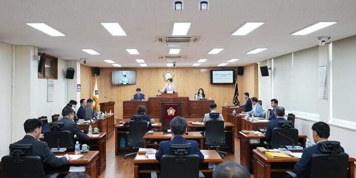 | ▲ 김보미 강진군의회 의장이 지난 25일 의회 본회의장에서 제301회 정례회 2차 본회의를 주재하고 있다. / 강진군의회 제공 |