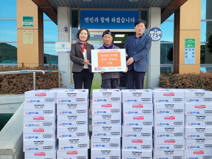 청덕면장은 “지역 사회의 어려운 이웃을 위해 따뜻한 마음으로 라면을 후원해 주신 차영흥씨에게 진심으로 감사드리고 기탁해 주신 물품은 관내 주민들을 위해 소중하게 잘 전달하겠다”고 말했다.