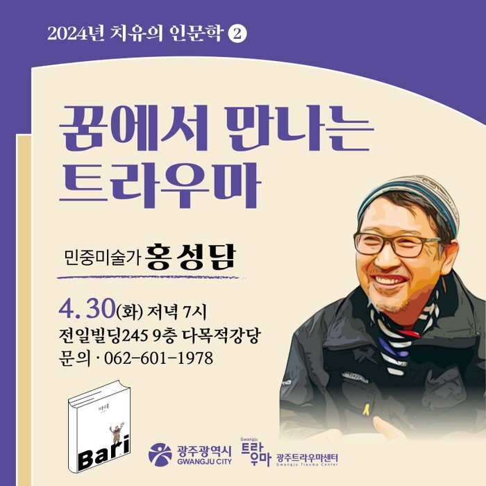한편 광주트라우마센터는 6월 국립국가폭력트라우마치유센터로 전환됨에 따라 센터가 운영 중인 ‘치유의 인문학’ 강좌는 올해 2차례만 운영한다.