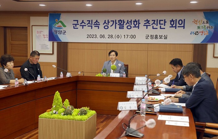 전남 영암군(군수 우승희)은 지난 6월 28일 군청에서 영암읍 상권의 지속·체계적 발전을 위한 ‘군수 직속 상가 활성화 추진단 회의’를 개최했다.