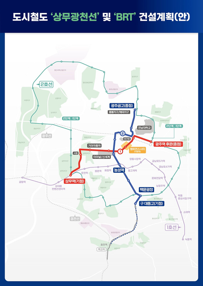 | ▲ 광주 도시철도 '상무광천선' 및 'BRT' 건설계획안(대자보도시)이미지 / 광주광역시 제공 |