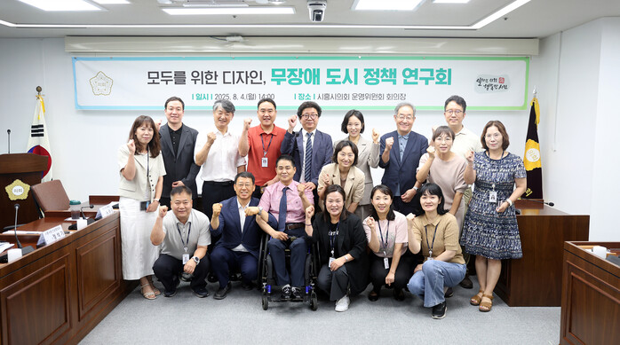 | ▲ 시흥시의회 의원 연구단체 「모두를 위한 디자인, 무장애 도시 정책 연구회」가 8월 4일 2층 의회운영위원회 회의장에서 연구회 2차 활동으로 ‘장애물 없는 생활환경 조성을 위한 모두의 약속’을 주제로 한 전문가 초청 강연을 진행했다 /사진제공=시흥시의회 |