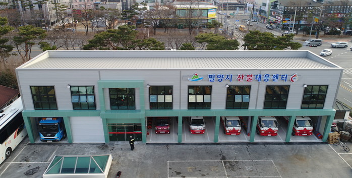 산불대응센터는 밀양시청 내 서문주차장에 지난 8월부터 6억5,000만원을 들여 지상 2층에 전체면적 455㎡으로 대기실 및 사무실 각 1동, 화장실 1동, 차고지 6동 및 창고 1동 규모로 설치됐다.