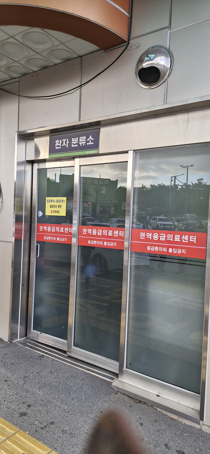 | ▲ 응급환자 심폐 시술이 실시된 병원 음급실 앞(사진=황승순 기자) |