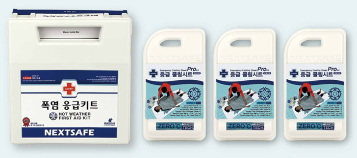 한편 폭염 재난용품 전문기업 ㈜넥스트세이프는 신제품 응급쿨링시트의 특허출원을 마쳤으며, 연구결과에 따라 1:3의 조합으로 폭염응급키트 HW4와 응급쿨링시트프로를 사용할 것을 권장하고 있다.