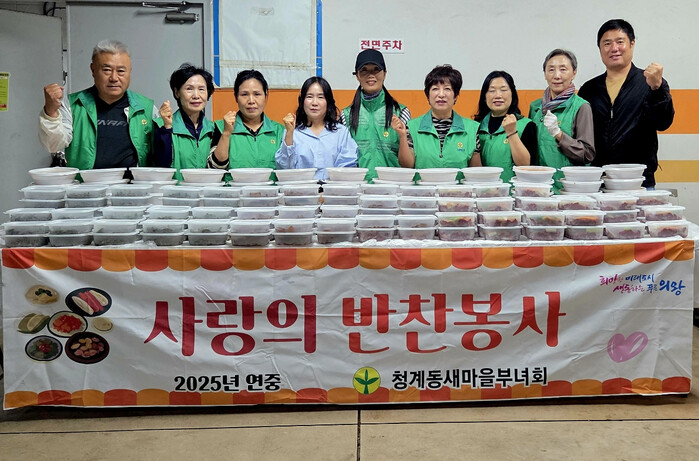 원선아 청계동장은“어려운 소외계층을 위해 매년 밑반찬 나눔 봉사활동을 하고 있는 새마을부녀회 회원분들게 매우 감사하다” 며, “부녀회원들의 사랑과 정성이 가득 담긴 밑반찬을 드시고 어렵게 생활하시는 분들이 힘을 내셨으면 좋겠다”고 전했다.