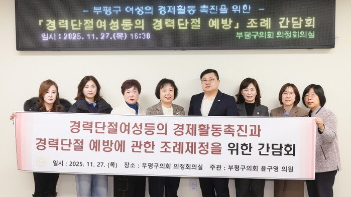 윤구영 의원은 “여성의 경제활동 참여는 개인의 문제해결을 넘어 부평구의 지속 가능한 성장과 경쟁력 강화에 필수적인 요건”이라며 “이번 간담회에서 제시된 소중한 의견들은 충분한 검토를 통해 조례에 담았다”고 설명했다.