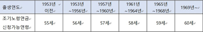 <표3> 출생연도별 조기노령연금 신청가능연령