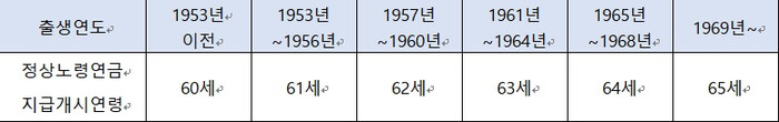 <표1> 출생연도별 지급개시연령