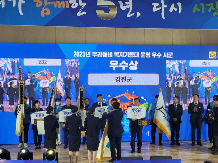 강진군은 우리동네 복지기동대 및 6개 기관‧단체와 유기적 협업체계 구축을 통한 생활밀착형 복지서비스 제공의 성과를 인정받아 우수상과 상금을 받았다.