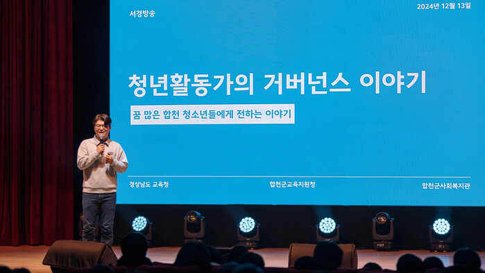 행사는 숏폼 제작교육의 성과품 시청으로 시작됐다. 이어 안태형 합천청년정책네트워크 위원장, 김록경 영화감독 겸 배우, 안현수 ANH스트럭쳐 대표가 강연자로 나서 각 분야에서 활동 중인 자신의 경험을 바탕으로 청소년들에게 지역사회와 함께 성장한 이야기를 들려주며 앞으로 나아갈 방향과 영감을 제시했다.
