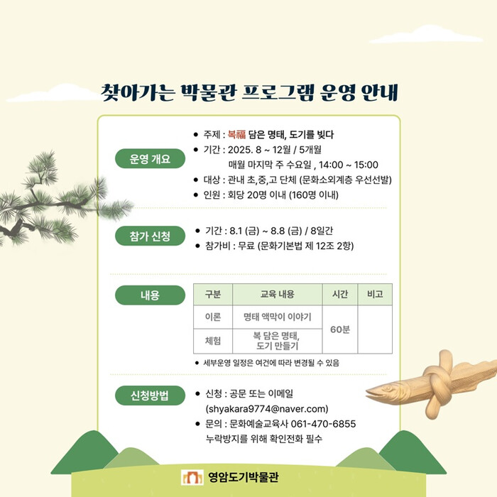 | ▲ 복담은 명태 도기로 빚다 프로그램 운영 안내 이미지 / 영암군 제공 |