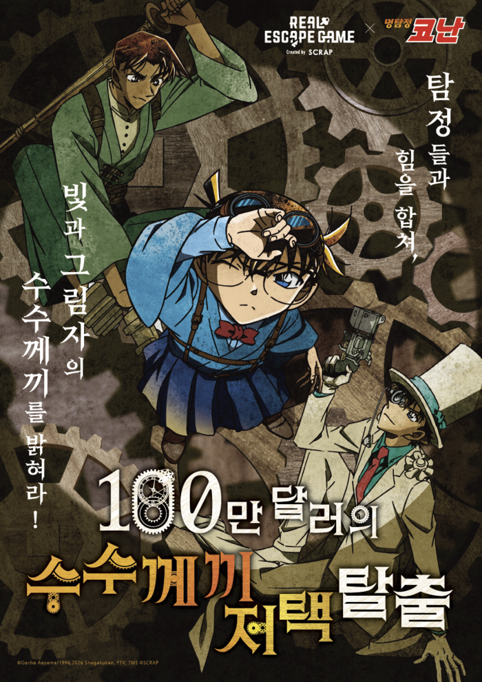 ‘명탐정 코난: 100만 달러의 수수께끼 저택 탈출’은 일본 SCRAP의 ‘리얼 이스케이프 게임(RealEscapeGame)’ 시리즈 중에서도 팬층이 두터운 작품 중 하나로, 극장판 ‘명탐정 코난: 100만 달러의 펜타그램’ 이후 전개되는 새로운 사건을 다룬 오리지널 스토리다. 참가자는 6명이 한 팀을 이루어 단서를 찾고 암호를 해독하며 약 2시간 규모의 몰입형 추리 체험을 즐길 수 있다.