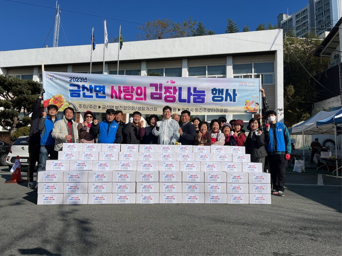 금산면 발전협의회는 22일 금산면사무소에서 연말을 맞아 소외계층의 따뜻한 겨울나기를 돕고 이웃사랑 실천을 위한‘2023년 사랑의 김장나눔행사’를 실시했다.