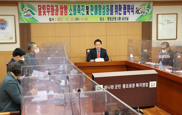 [영암=정찬남 기자] 전남 영암군은 지난 22일 군청 낭산실에서 지역대표 관광 상품 달빛무화과쌀빵 재료공급 및 판매 활성화를 위한 다자간 업무 협약식을 가졌다.