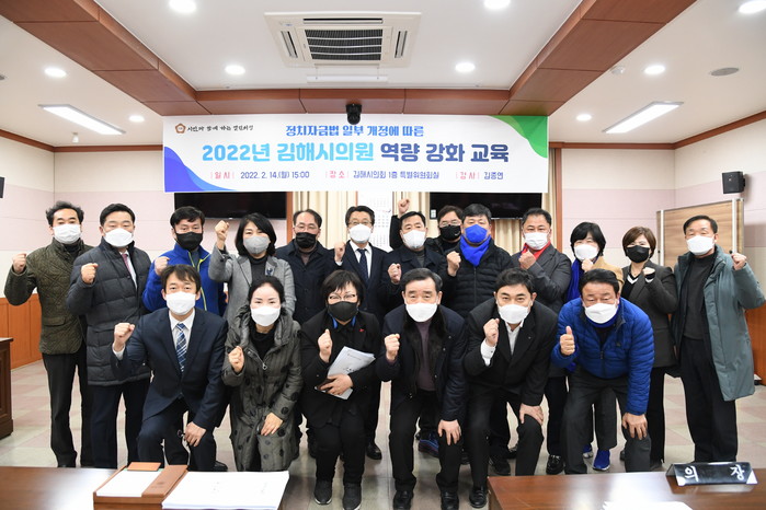 김해시의회(의장 송유인)는 지난 14일, 의회 1층 특별위원회실에서 의원들을 대상으로 정치자금법 일부개정과 관련해 역량 강화교육을 실시했다.